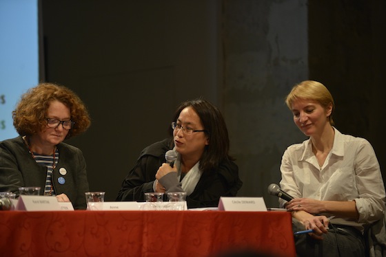 photo table ronde ATLF 2014Animée par Cécile Deniard, vice-présidente de l’ATLF, elle a réuni Bel Olid, présidente du Conseil européen des associations de traducteurs littéraires (CEATL), Véronique Trinh-Muller, directrice du Centre national du livre (CNL), Anne Bergman-Tahon de la Fédération des éditeurs européens (FEE), Karel Bartak du programme Europe Créative et Geoffroy Pelletier, directeur de la Société des Gens de lettres, membre de l’European Writers Council (EWC).