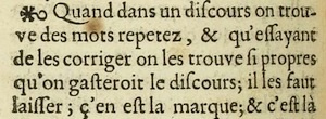 – Ah ! Anne-Marie, nous devons avoir la même correctrice. Une véritable pavlovisation. Même lorsque la répétition me semble à moi nécessaire, pour la logique ou pour le rythme ou pour les deux, elle tire, ping ! ping ! (Tir à vue, d’ailleurs, bien plus qu’à l’oreille.) N’est-ce pas toi qui nous avais rappelé le mot de Pascal, dans les Pensées : « Quand dans un discours on trouve des mots répétés, et qu’essayant de les corriger, on les trouve si propres qu’on gâterait le discours, il les faut laisser. » Je le cite parfois à mes relecteurs… (Rose-Marie Vassallo)