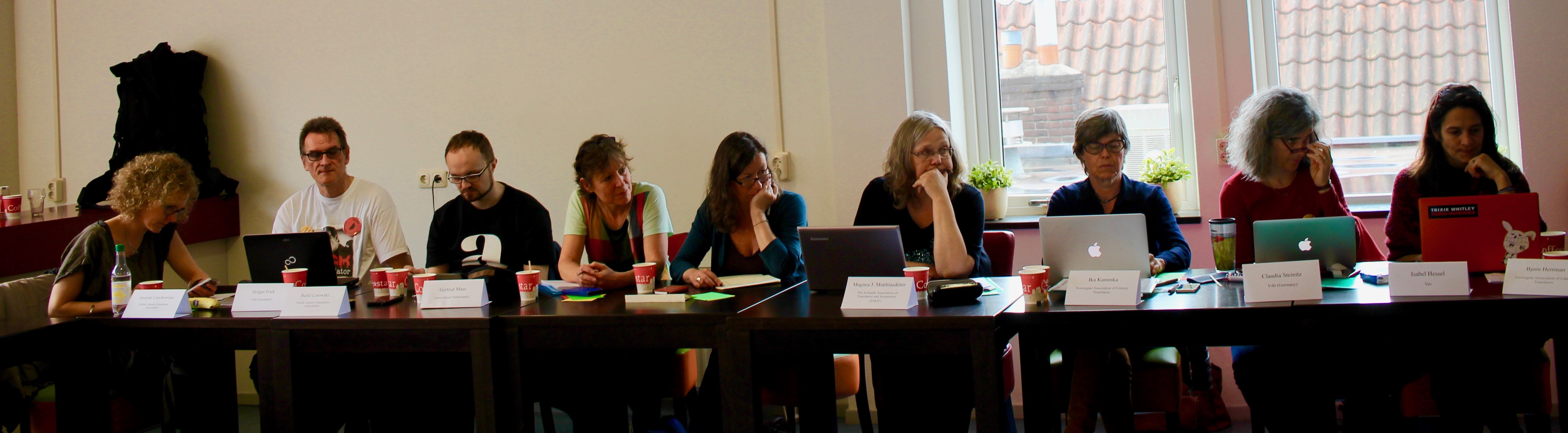 Chaque année, le bureau et des délégués venus de toute l’Europe se réunissent pendant quelques jours afin de coordonner leurs actions en faveur de la défense des traducteurs, tenir leur AG et travailler sur des sujets concrets, répartis en groupes de travail (doit d’auteur, visibilité, communication, bonnes pratiques, formation, conditions de travail).
