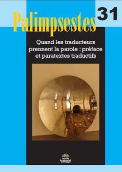 « Le numéro 31 de la revue de traductologie Palimpsestes s’inscrit dans le cadre du projet TTT (Textes Théoriques sur la Traduction) visant à rendre visible la parole des traducteurs sur leur travail au cours des siècles. Ce volume se fonde sur l’étude de la prise de parole/prise de position de traducteurs (le plus souvent écrivains eux-mêmes) sur leur travail. Il s’intéresse principalement à la préface qui apparaît comme tribune privilégiée mais s’attache aussi à d’autres formes de paratexte. »